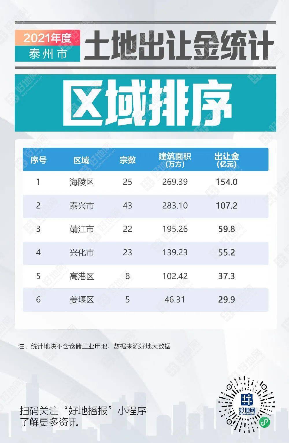 原标题:好地研究院:泰州2021年成交443.4亿创新高,县市出让金占比增长