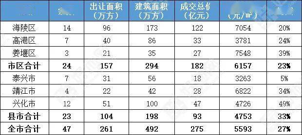 县市方面,泰兴市成交7宗,总金额18亿;靖江市成交4宗,总金额28亿;兴化市成交12宗,总金额47亿。