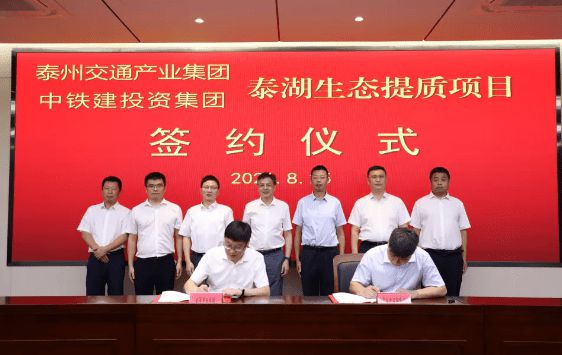 中国铁建投资集团与泰州市交通产业集团在泰州市签署泰湖生态提质项目投资协议。