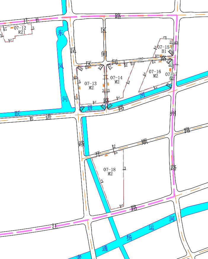 4、新增5处R21二类住宅用地,1处B1商业用地,1处G2防护绿地,07图则新增补充:东至广州路,南至长江路,西至天津路,北至陈庄路;