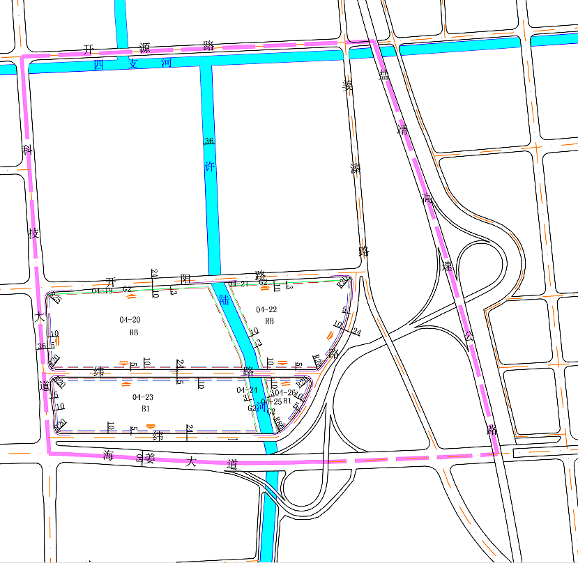 2、新增2块RB商住混合用地,新增2块B1商业用地以及4处G2防护绿地,04图则新增补充:东至姜溱路,南至海姜大道,西至科技大道,北至开阳路;