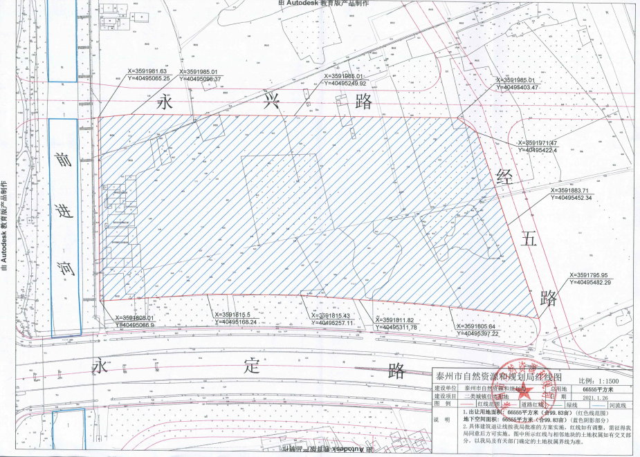 土地位置:泰州医药高新区永定路北侧、前进河东侧