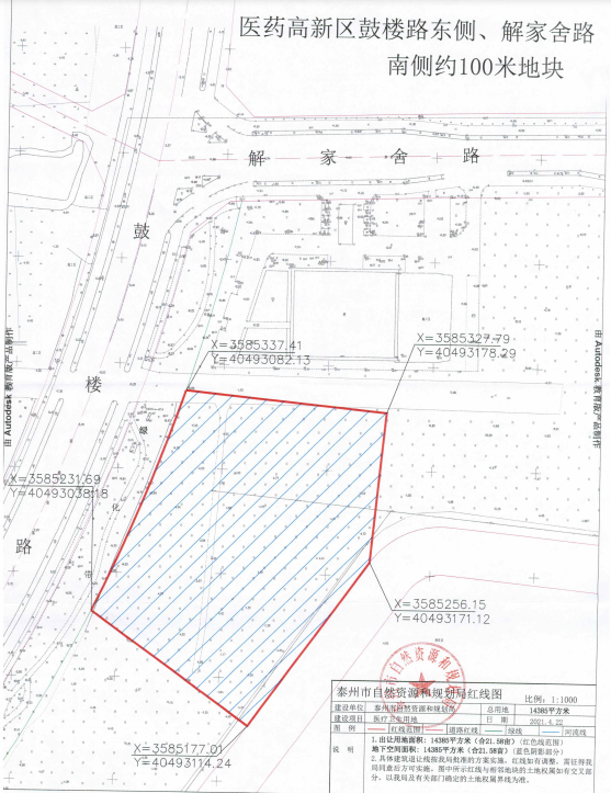 土地位置:泰州医药高新区解家舍路南侧约100米、鼓楼路东侧
