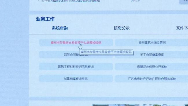 进入房源核验码的申请平台目前有两种方式,电脑端可以通过泰州市住建局的官方网站进入,手机端可以通过“泰州房地产信息网”公众号进入。小编看到,平台界面共有房源核验申请、房源码验真、房源码下载三个选项,市民可以一目了然。