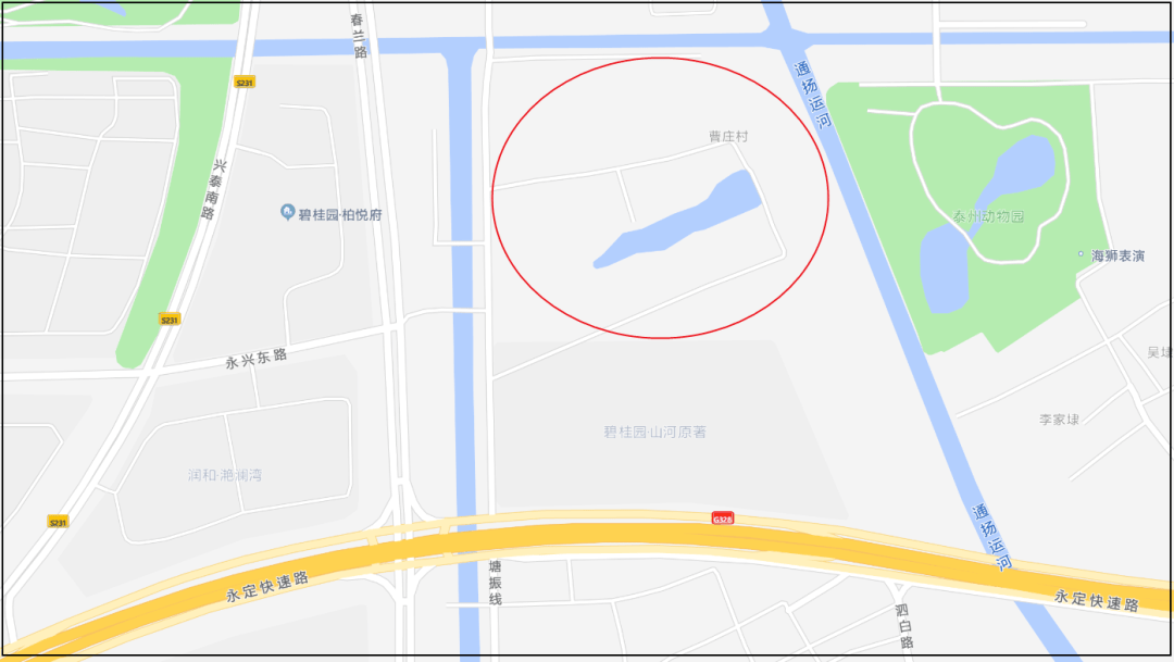根据地块位置信息,分析该块地大致位于泰州动物园西侧,碧桂园·山河原著项目北侧。