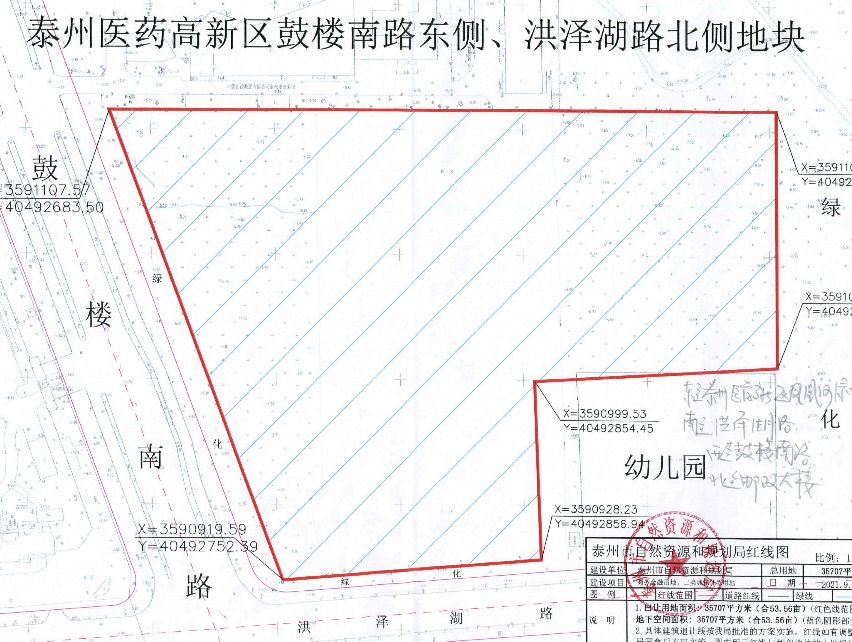 四至范围:东至泰州医药高新区兴河路、南至太湖路、西至鑫丰路、北至洪泽湖路