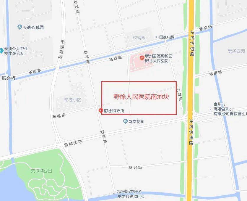 四至范围:东至泰州医药高新区东风路、南至药城大道、 西至野徐路、北至福康路