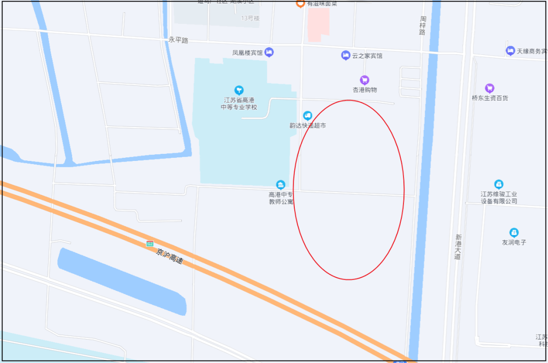 四至范围:东至高港区许庄街道周梓中沟、 南至宁通高速、西至三星路、北至围庄河