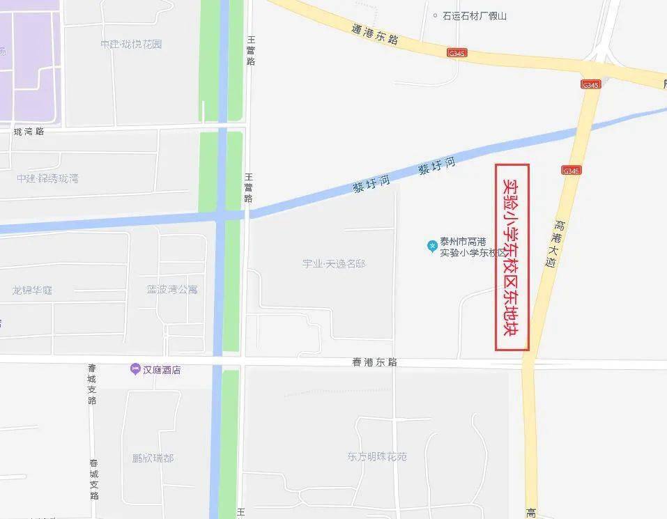 四至范围:东至高港区口岸街道高港大道、南至春港路、 西至实验小学东校区、北至蔡圩中沟