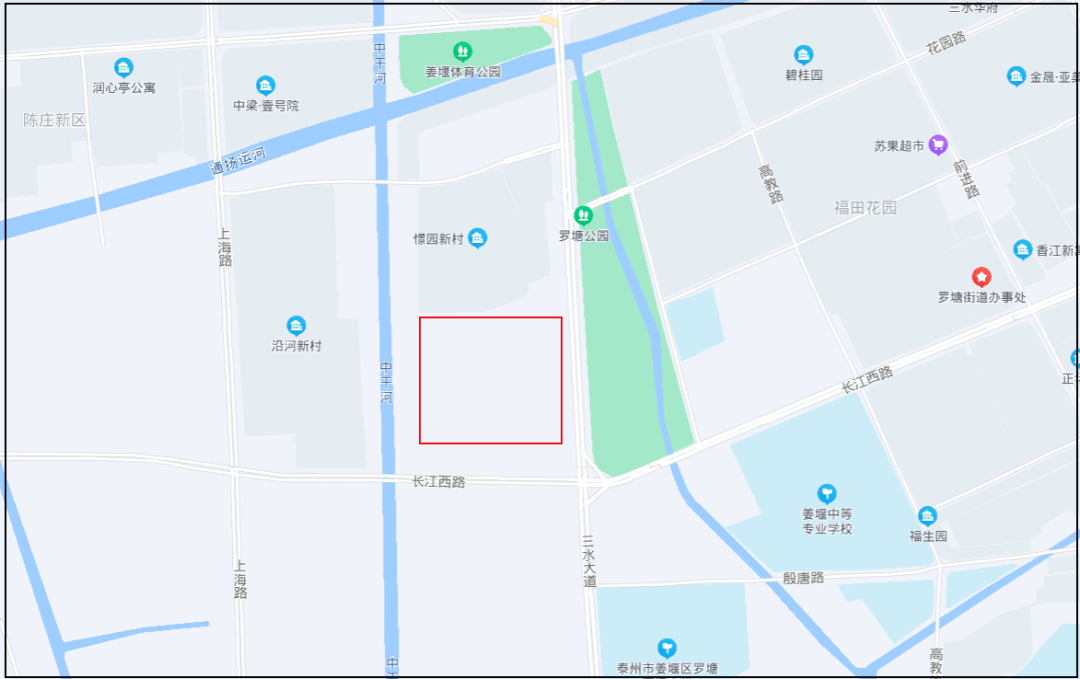 四至范围:东至泰州医药高新区经五路、南至永兴路、 西至前进河、北至翻身河