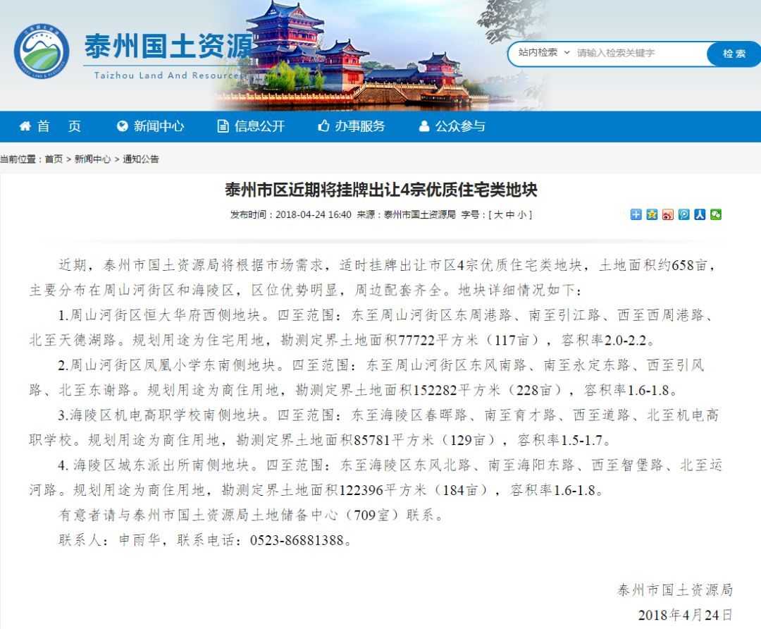 泰州土地市场又有动作!市区4宗优质住宅类地块挂牌出让!看看都在哪儿