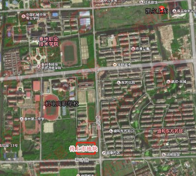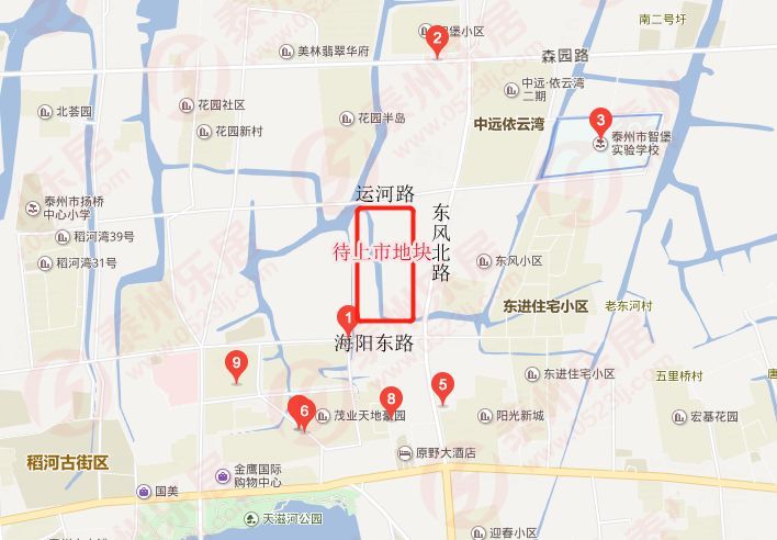 该地块在育才路和春晖路交叉处,附近有泰州第二中学、南师大泰州学院等院校,靠近泰州老街,与东方名门、东方名邸、阳光国宾一号等楼盘属于同一地块。属于热门地块。