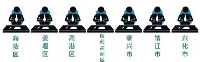 参加考试的泰州七个弟兄,分别是:靖江市、泰兴市、兴化市、海陵区、高港区、姜堰区、医药高新区。