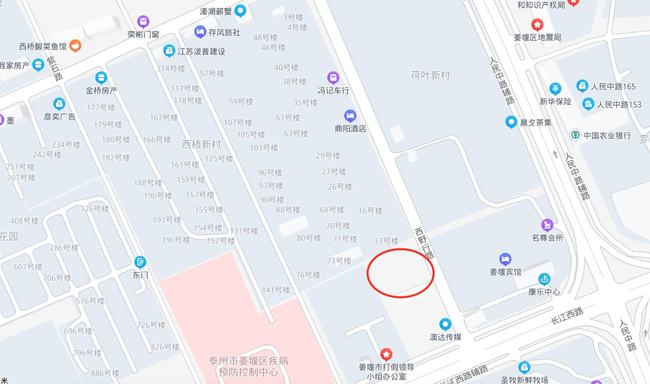 地址:东至荷叶新村22号楼东侧南北路,西至西野行路,南至姜堰宾馆北围墙,北至荷叶新村19号楼北侧东西路。