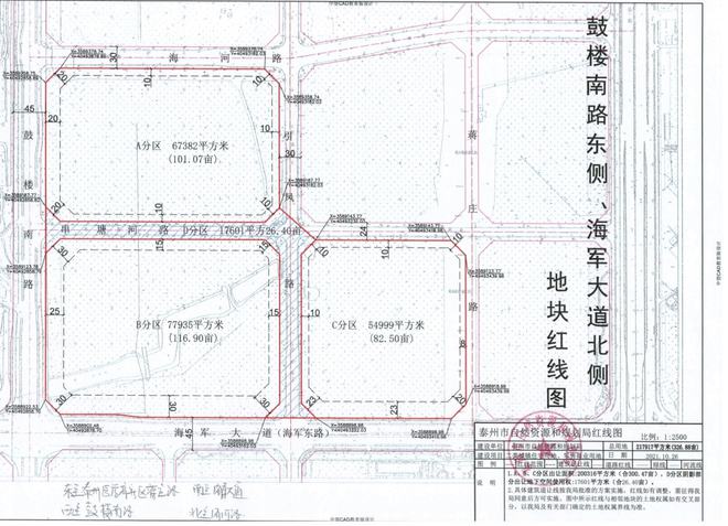 地块位置:东至泰州医药高新区蒋庄路及引凤路、南至海军大道、西至鼓楼南路、北至海河路