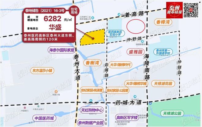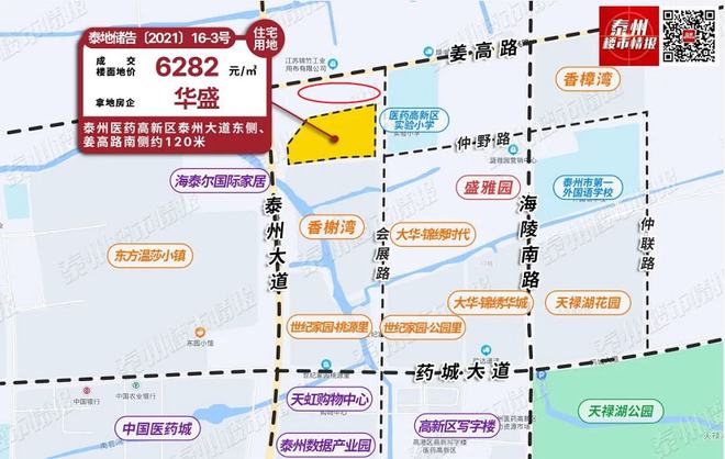 地块位置:东至泰州医药高新区会展路、南至空地、 西至泰州大道、北至姜高路