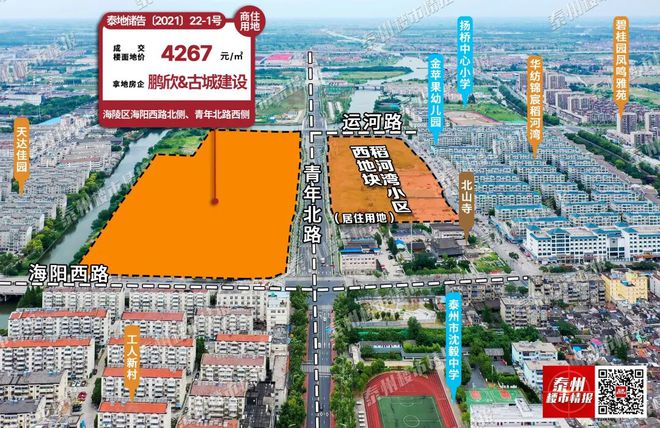 地块分析:地块位于海陵区教育局附近,周边小区众多,生活氛围非常浓厚,同时文峰大世界、海陵学校、泰州人民医院都在附近,是典型的泰州老城区。