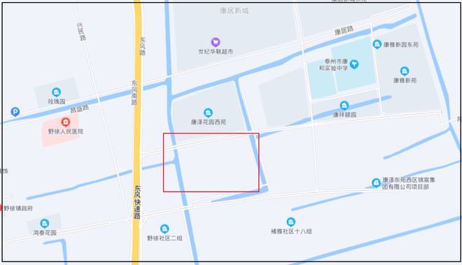地块位置:东至泰州医药高新区东风路、南至药城大道、 西至野徐路、北至福康路