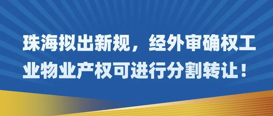 附完整政策链接:工业物业产权可按幢、层等基本单元进行分割转让!珠海拟出台新办法